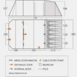 - High Cable Entry – Allows you to neatly run electrical cables out into the awning area at the front of the tent