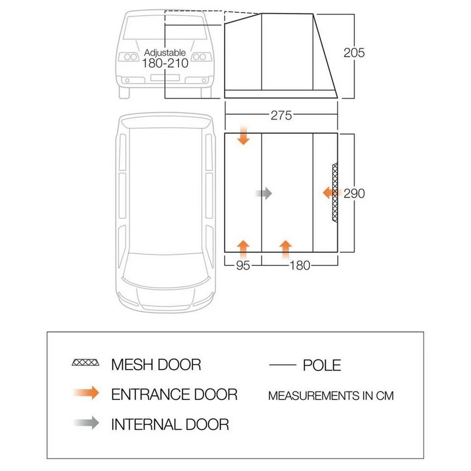 The large front door with mesh panel creates a great living space making this awning the perfect addition to your vehicle on short breaks away.