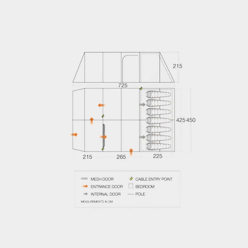 This large poled family tent has an abundance of space and an enclosed porch area with new arrangement for better storage and protection from wet weather. The extra-large living room and two super-king bedrooms have Vango’s new Nightfall bedrooms for a better lie-in. Recommended for up to 7 people, this tent was named Casa because it truly emphasises the home-from-home feel you get thanks to the excellent light and space.