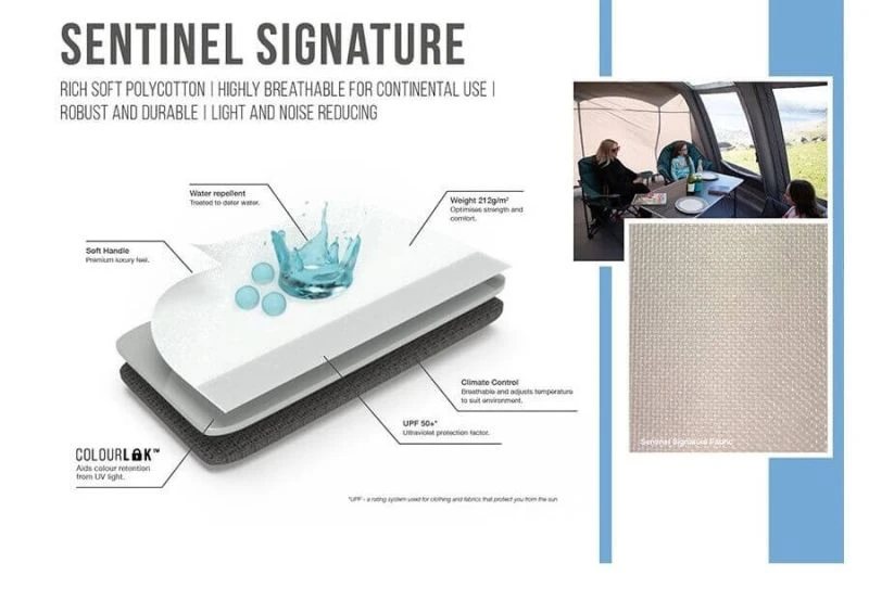• Vango Sentinel Signature 212g/m2 Polycotton Fabric with ColourLok™ technology