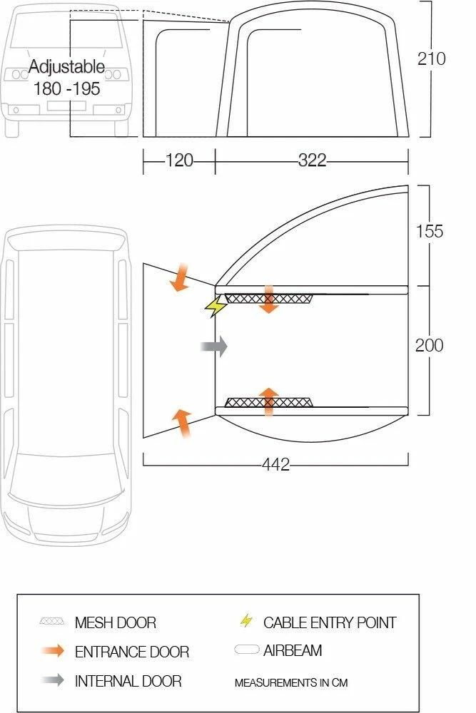 The all-new Vango Magra VW Low Awning (2022) is a side-fitting, lightweight drive away awning, designed in two stylish colour options, for a more sporty-look in the colour of Shadow Grey. Furthermore, the functional and practical design allows for greater optimisation of space, as the side-fitting design will take up less space on the campsite pitch. The off-set doors allow for entry into either side for added convenience, and both doors feature a mesh panel, which will help to aid ventilation and reduce condensation inside. The internal living space has a sewn-in groundsheet for added protection from the elements, and each entrance has a rain-safe canopy for sitting under during the evening, and for easier entry when the rain starts.