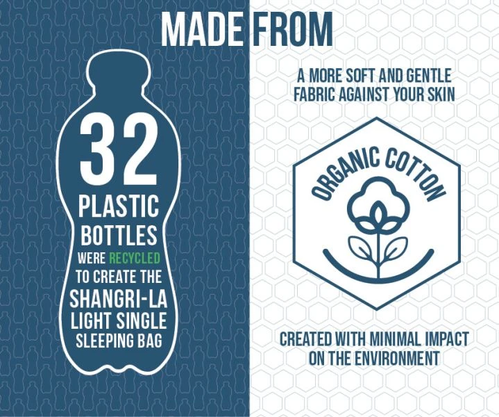 Vango has expanded their Shangri-La Collection to include a beautiful new range of luxury sleeping bags, designed to perfectly compliment their award-winning Shangri-La self inflating mats and also to offer the ultimate night’s sleep. As part of their Earth Collection, the Vango Shangri-La Light Single bag has been made using organic cotton and 100% recycled polyester, making it a more sustainable, and a more comfortable, choice.