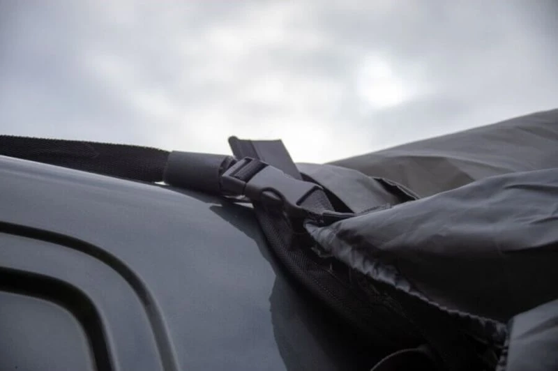 The Tailgate Hub is designed with campervans in mind, the connection tunnel has a door on either side so that you don’t have to go through the awning every time just to have access to the van. The tunnel section tends to fit vans better than other brands because it has a smaller size range (180-210cm), it can also be attached to a van via multiple ways (Throw Over Straps, Fixing Kit, Pole & Clamp Kit & Velcro Tabs)